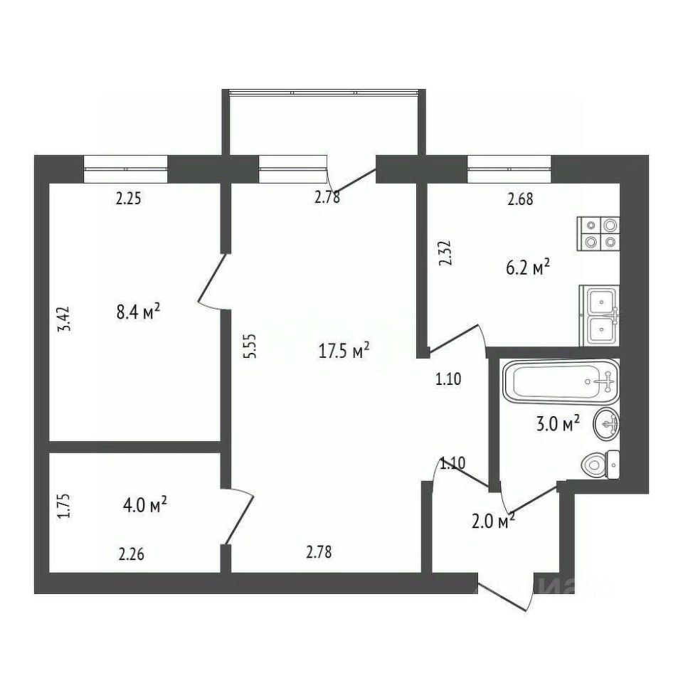 Общая площадь42 м²