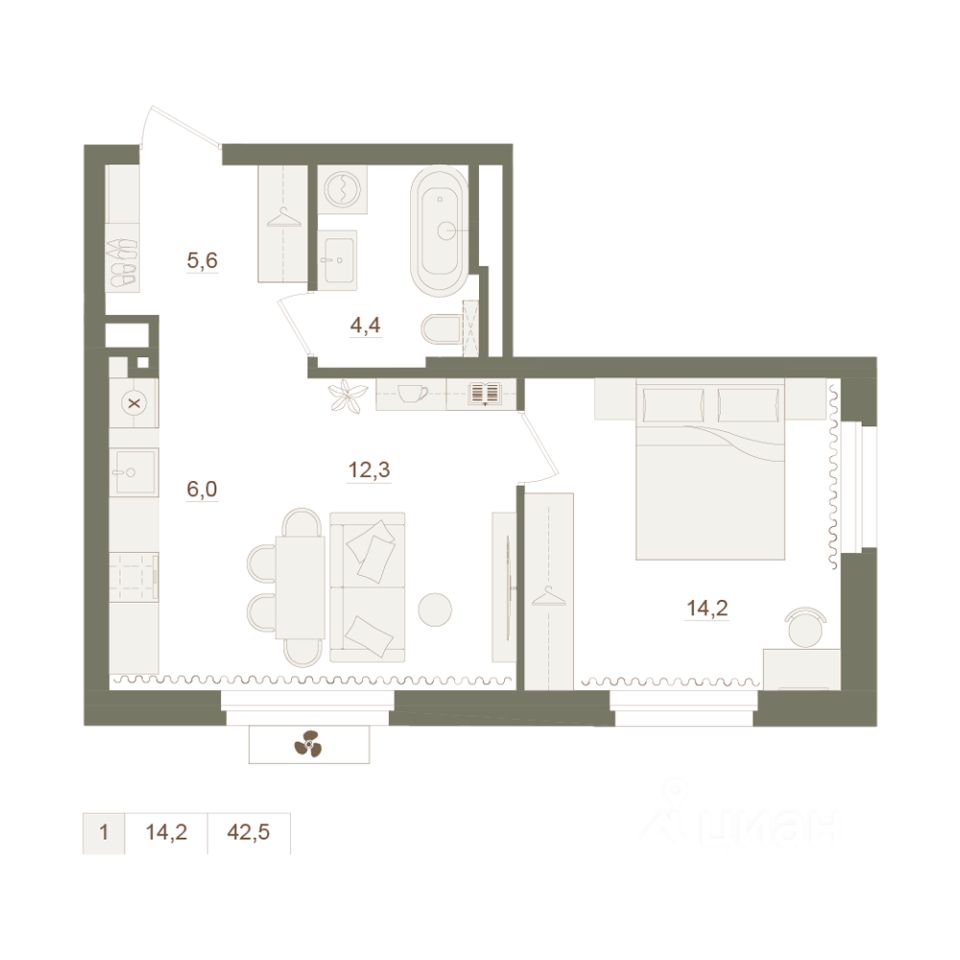 Общая площадь42,5 м²