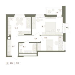 Общая площадь56 м²