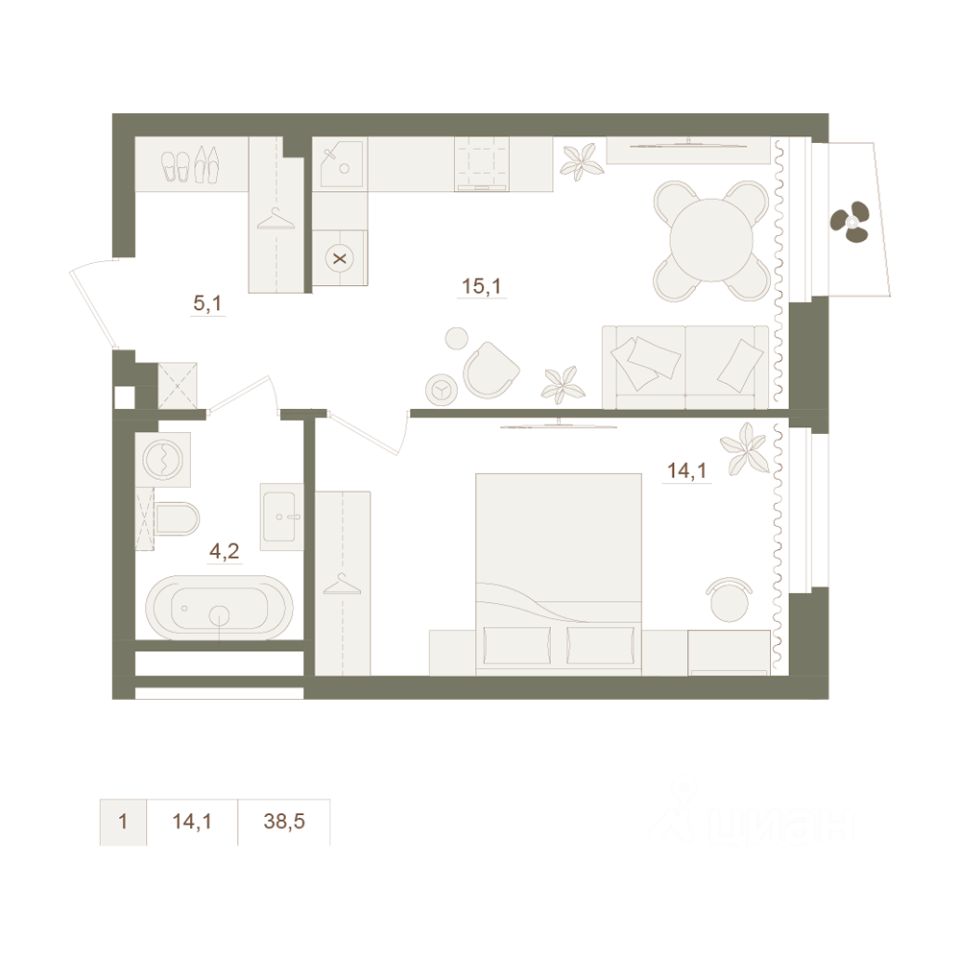 Жилая площадь14,1 м²