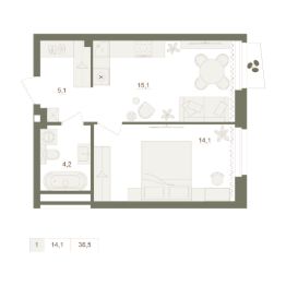 Общая площадь38,5 м²