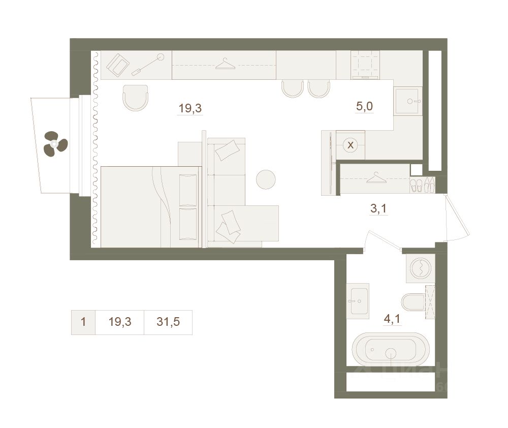 Жилая площадь19,3 м²