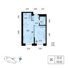 Жилая площадь 35.12 кв. м. от ГК "Первый Трест".