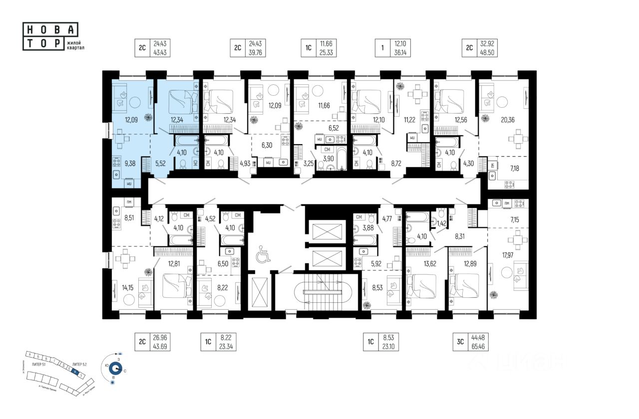 Литер 5.2, Секция 7. 14-й этаж 25- этажного жилого дома