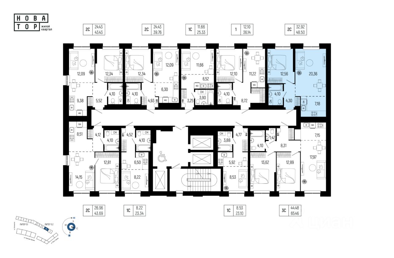 Литер 5.2, Секция 7. 22-й этаж 25- этажного жилого дома