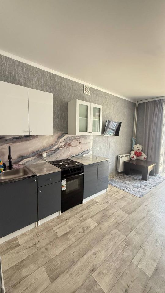 В квартире уложен хороший линолеум, натяжные потолки, панорамное остекление визуально увеличвает пространство, есть возможность на лоджии организовать рабочую зону. Санузел совмещенный, просторный, на полу уложена плитка. При продаже Покупателям остается новый кухонный гарнитур, электричекая плита. Дом 2021 года постройки, с хорошей тепло- и шумоизоляцией. В шаговой доступности начато строительство нового физкультурно-оздоровительного комплекса "Алга", а это значит что цены в районе на конец строительства существенно возрастут.
