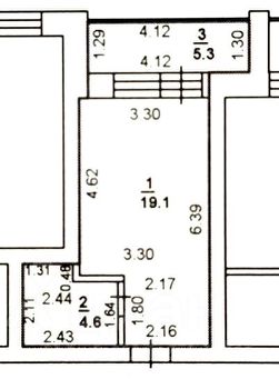 Жилая площадь 19,1 кв.м.