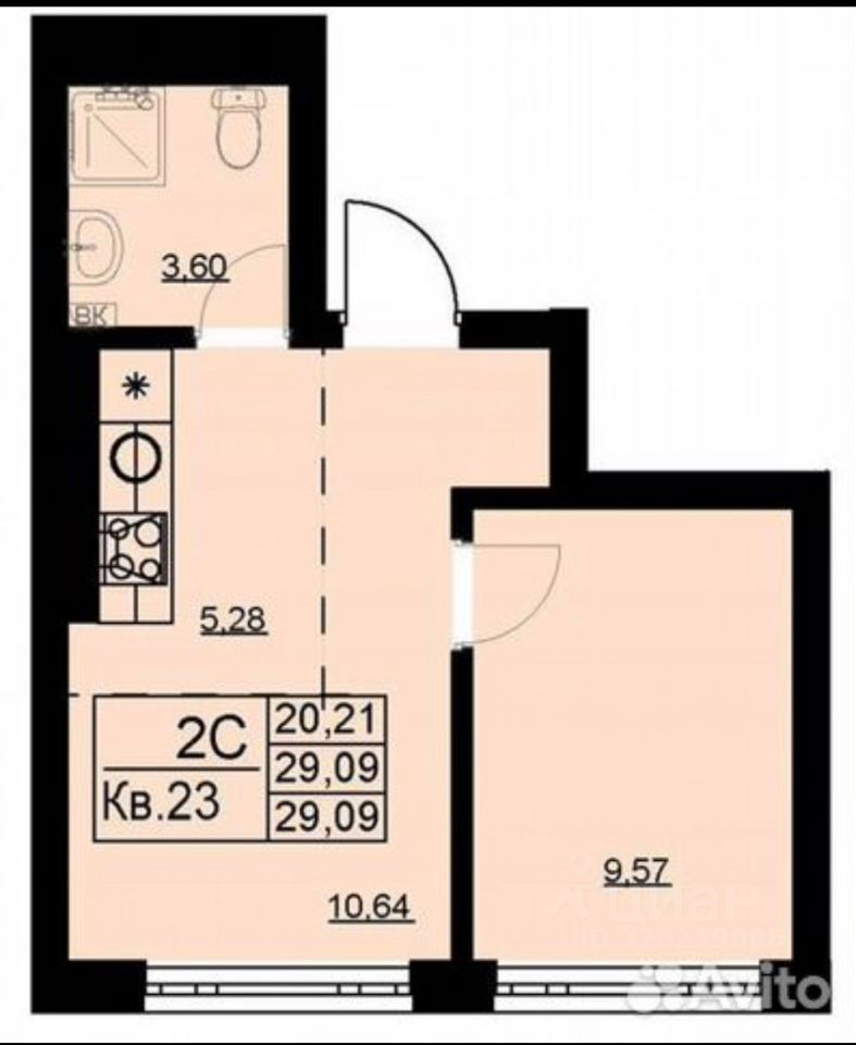 Площадь кваpтиры 29,09 м².