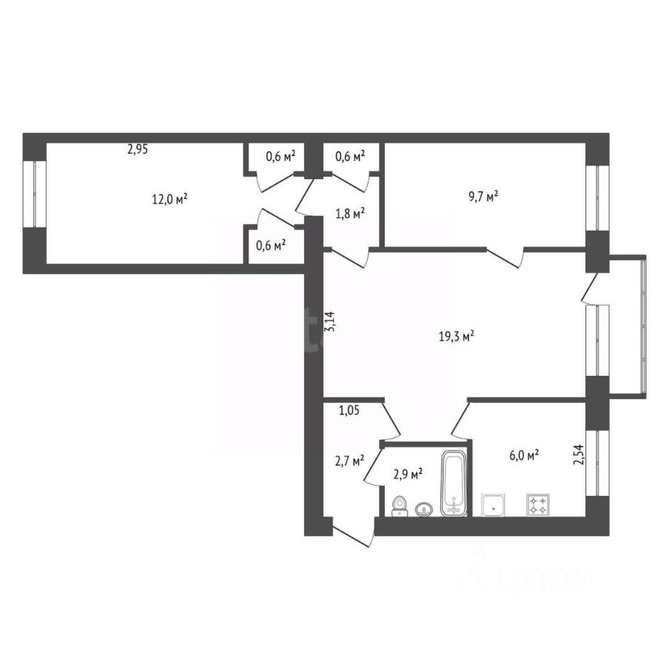 2 полноценные спальни, продуманная планировка без лишних коридоров