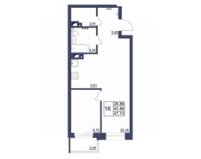 Продаётся 1-комнатная квартира в строящемся доме (Литер 1), срок сдачи: II-кв. 2027, общей площадью 47.23 кв.м., на 10 этаже. За основу застройки ЖК "Космос" предполагается идея объединения городских противоположностей - периферии и центра, создав типологический гибрид, который вобрал в себя зеленую среду и высокий градус социально-культурной жизни.