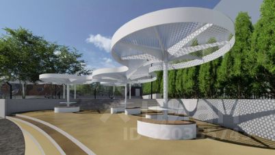 Концепция благоустройства включает в себя современный подход к проектированию общих зон отдыха. Основной идеей пространства "Космоса" является простота и лаконичность форм, достигаемая при помощи изменения ландшафта и нестандартных архитектурных решений.