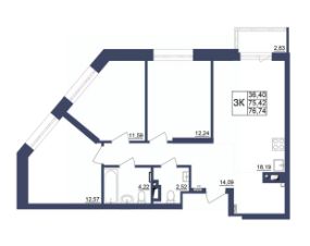 Продаётся 3-комнатная квартира в строящемся доме (Литер 1), срок сдачи: II-кв. 2027, общей площадью 76.74 кв.м., на 17 этаже. За основу застройки ЖК "Космос" предполагается идея объединения городских противоположностей - периферии и центра, создав типологический гибрид, который вобрал в себя зеленую среду и высокий градус социально-культурной жизни.