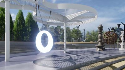 Концепция благоустройства включает в себя современный подход к проектированию общих зон отдыха. Основной идеей пространства "Космоса" является простота и лаконичность форм, достигаемая при помощи изменения ландшафта и нестандартных архитектурных решений.