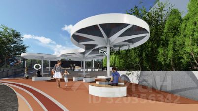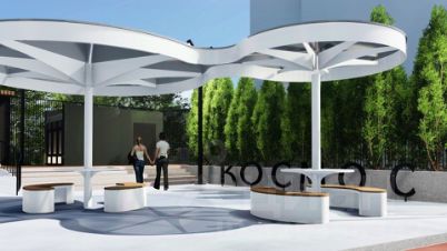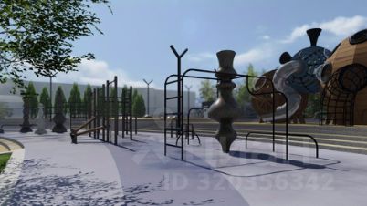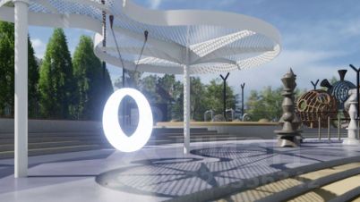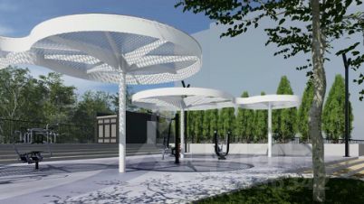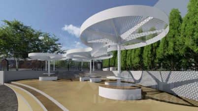Концепция благоустройства включает в себя современный подход к проектированию общих зон отдыха. Основной идеей пространства "Космоса" является простота и лаконичность форм, достигаемая при помощи изменения ландшафта и нестандартных архитектурных решений.