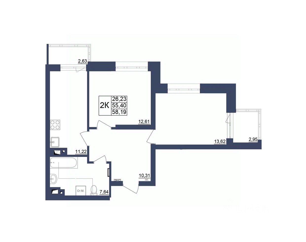 Продаётся 2-комнатная квартира в строящемся доме (Литер 1), срок сдачи: II-кв. 2027, общей площадью 58.19 кв.м., на 24 этаже. За основу застройки ЖК "Космос" предполагается идея объединения городских противоположностей - периферии и центра, создав типологический гибрид, который вобрал в себя зеленую среду и высокий градус социально-культурной жизни.