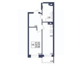 Продаётся 1-комнатная квартира в строящемся доме (Литер 1), срок сдачи: II-кв. 2027, общей площадью 43.99 кв.м., на 24 этаже. За основу застройки ЖК "Космос" предполагается идея объединения городских противоположностей - периферии и центра, создав типологический гибрид, который вобрал в себя зеленую среду и высокий градус социально-культурной жизни.
