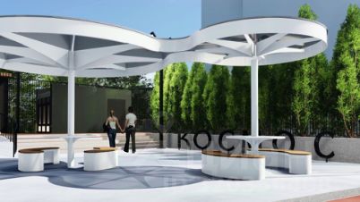 Концепция благоустройства включает в себя современный подход к проектированию общих зон отдыха. Основной идеей пространства "Космоса" является простота и лаконичность форм, достигаемая при помощи изменения ландшафта и нестандартных архитектурных решений.