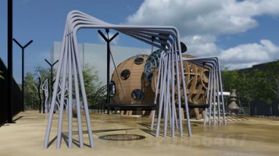 Концепция благоустройства включает в себя современный подход к проектированию общих зон отдыха. Основной идеей пространства "Космоса" является простота и лаконичность форм, достигаемая при помощи изменения ландшафта и нестандартных архитектурных решений.
