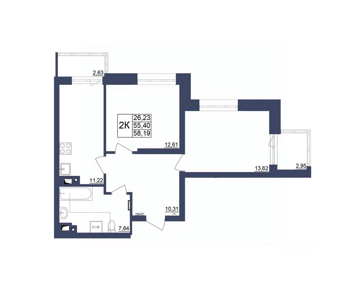 Продаётся 2-комнатная квартира в строящемся доме (Литер 1), срок сдачи: II-кв. 2027, общей площадью 57.98 кв.м., на 27 этаже. За основу застройки ЖК "Космос" предполагается идея объединения городских противоположностей - периферии и центра, создав типологический гибрид, который вобрал в себя зеленую среду и высокий градус социально-культурной жизни.