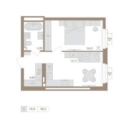 8-й этаж 25 - этажного жилого дома, общая площадь 39.2 кв. м., жилая площадь 14.01 кв. м. Возможна ипотека от банков-партнеров. Срок окончания строительства: 4 квартал 2027 года