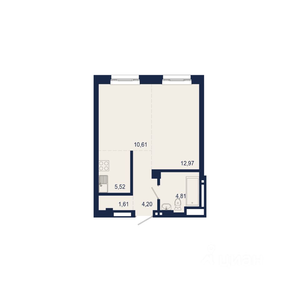 Общая площадь: 39,72 м²