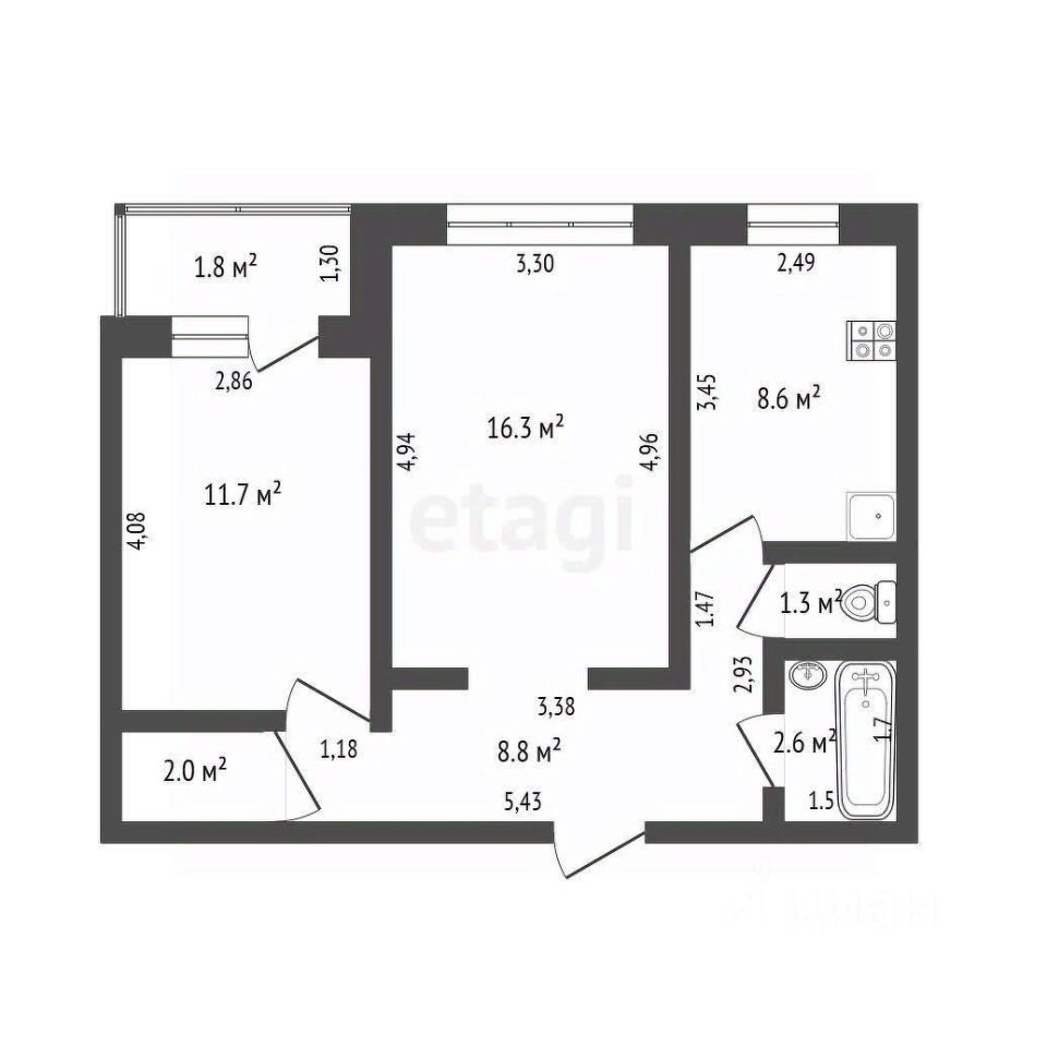 * **Отличная планировка:** Просторные комнаты и огромная кухня 9 м², где с лёгкостью поместится и обеденная зона, и кухонный гарнитур.