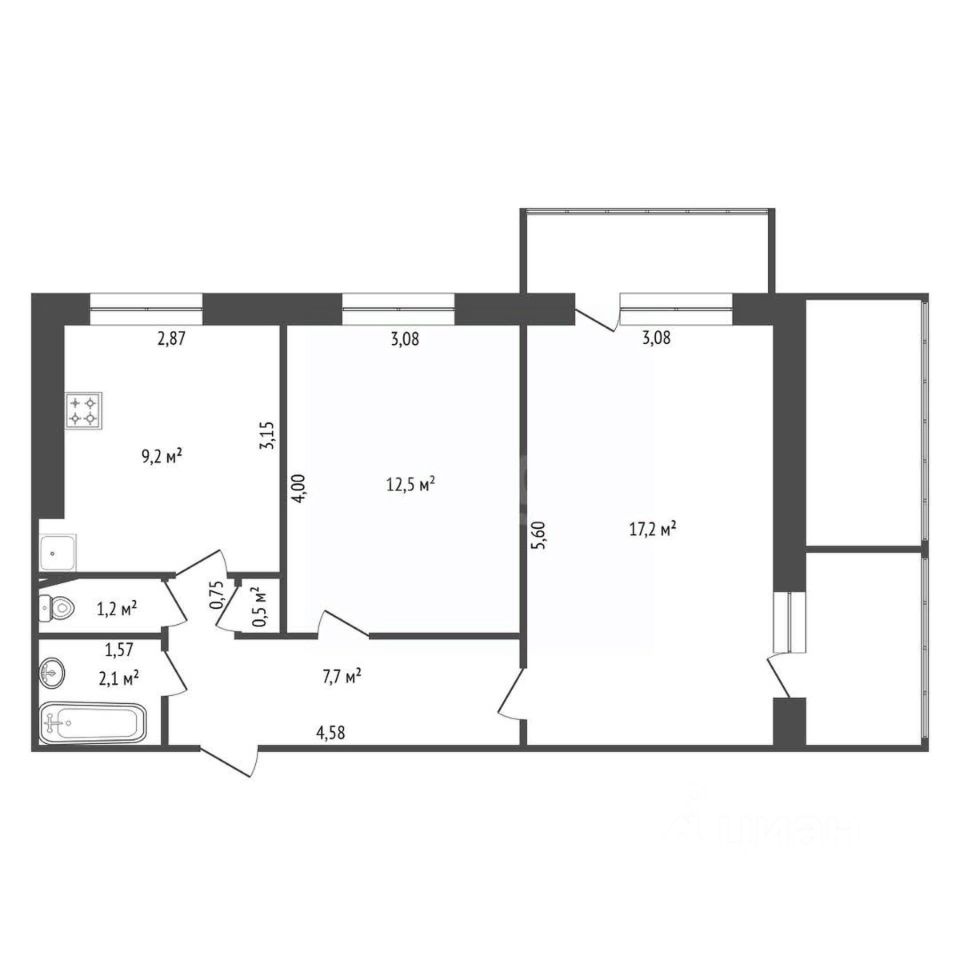 Площадь: 55 м²