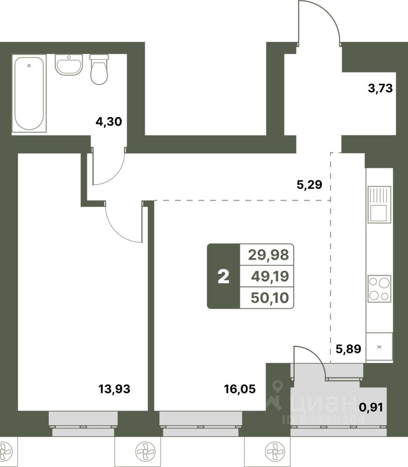 Продается 2-к-комнатная квартира в ЖК "Свой Берег" от ГК "Архстрой Групп". 4-й этаж 8-этажного жилого дома, общая площадь 50.1 кв.м., жилая площадь 29.98 кв.м. Отделка получистовая.