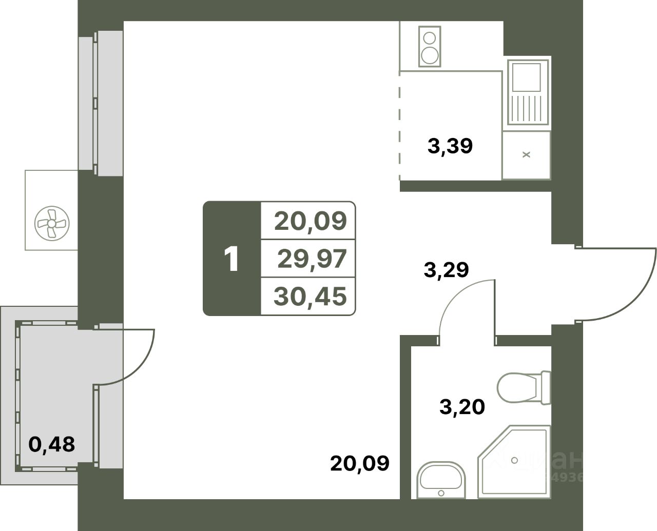 30,45 м²