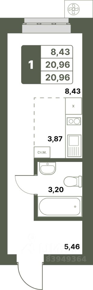 20,96 м²