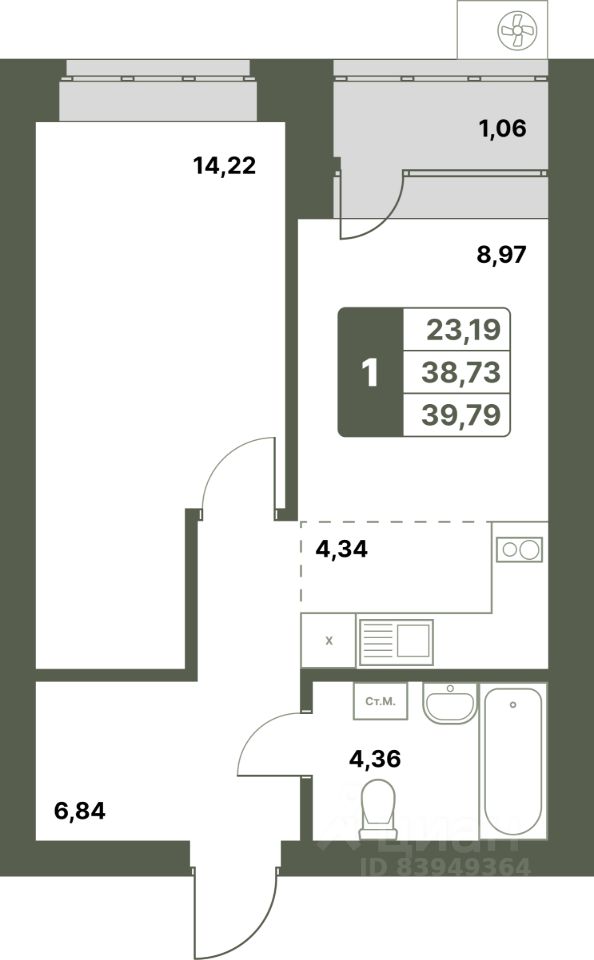 39,79 м²