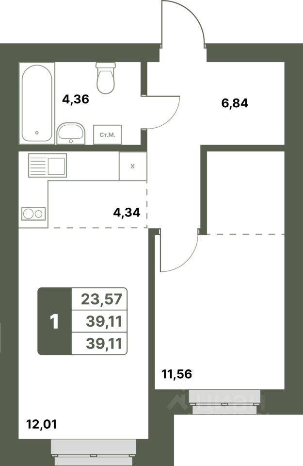 39,11 м²