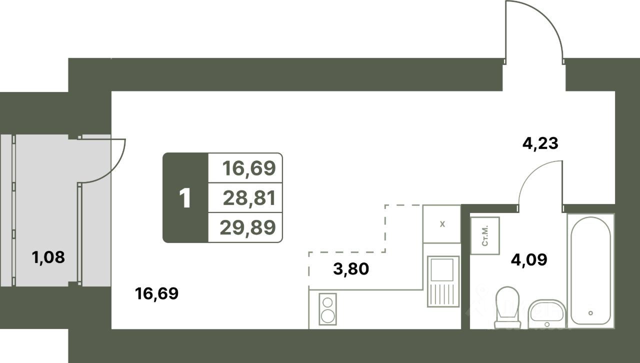 29,89 м²