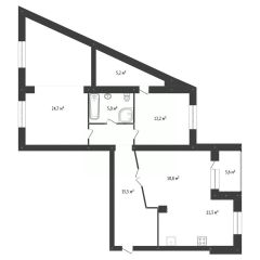 Общая площадь - 92кв.м. Большая кухня-гостиная, и 2 изолированные комнаты. В спальне есть большая гардеробная.