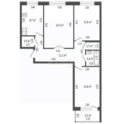 Спальни: 13,0 и 11,8 кв.м.