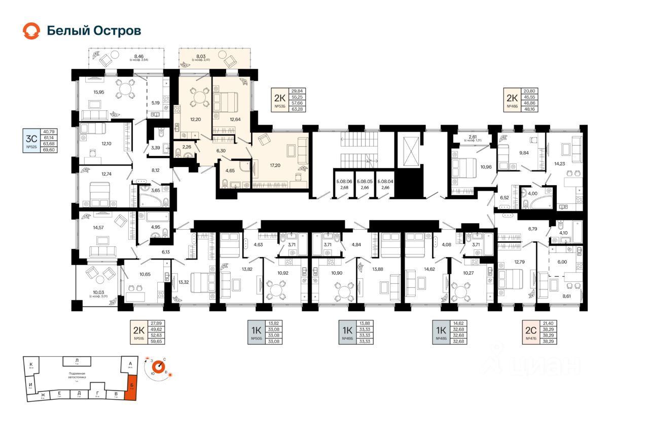 Литер 1, Секция Б. 8-й этаж 9- этажного жилого дома