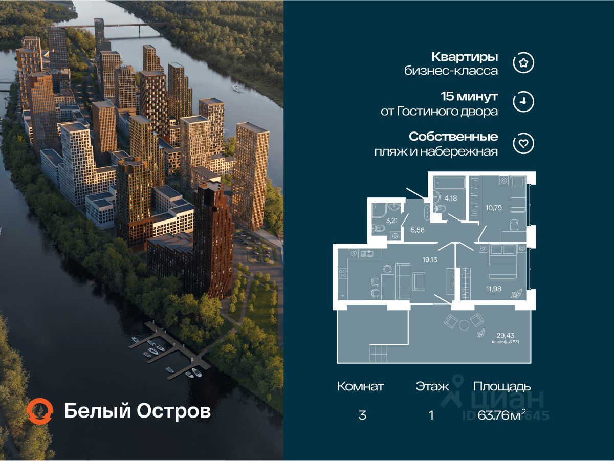 3-к квартира в ЖК Первый Остров;