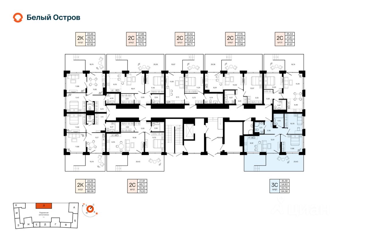 Литер 1, Секция Л. 1-й этаж 7- этажного жилого дома