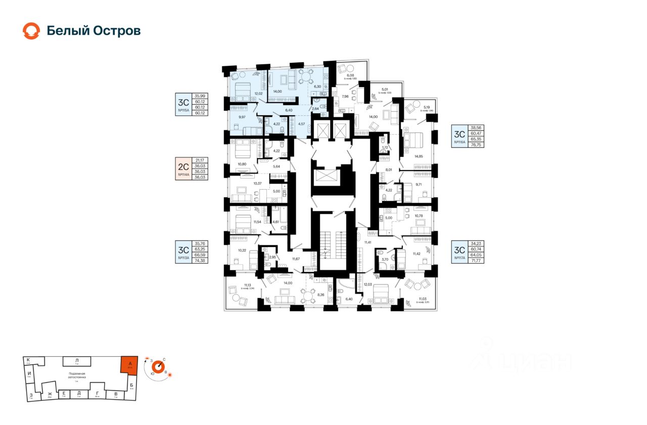 Литер 1, Секция А. 18-й этаж 20- этажного жилого дома