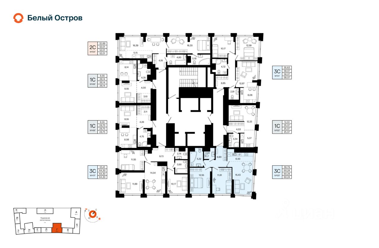 Литер 1, Секция Г. 10-й этаж 31- этажного жилого дома