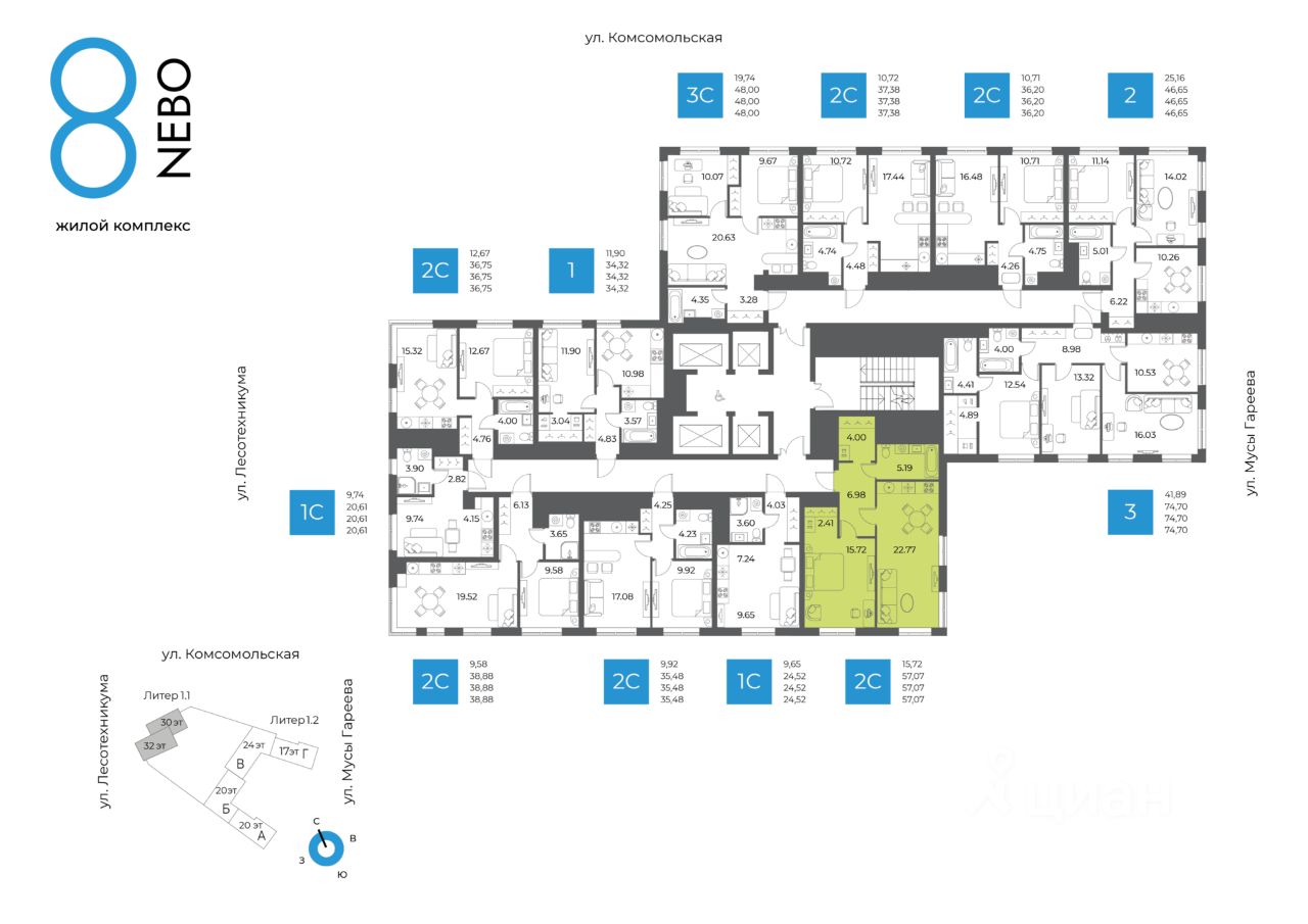 Литер 1, Секция 1. 24-й этаж 32- этажного жилого дома