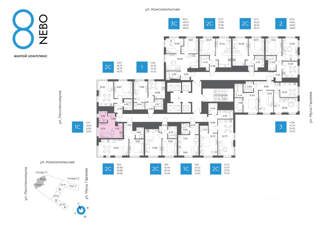 Литер 1, Секция 1. 24-й этаж 32- этажного жилого дома