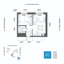 Жилая площадь 28.57 кв. м. от ГК "Первый Трест".