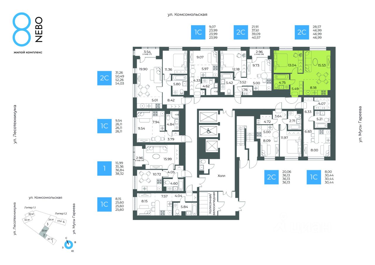Литер 1.2, Секция 2. 2-й этаж 20- этажного жилого дома