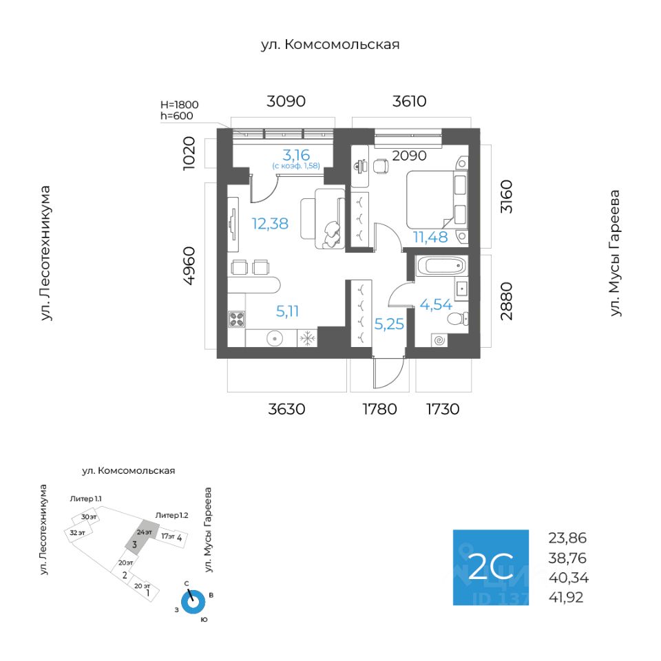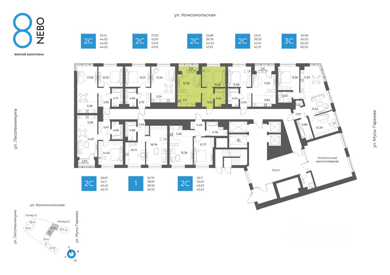 Литер 1.2, Секция 3. 2-й этаж 24- этажного жилого дома