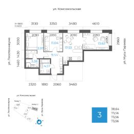 Общая площадь 73.56кв.м.;