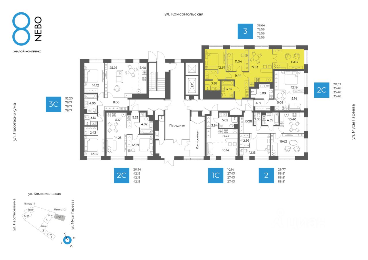 Литер 1.2, Секция 4. 2-й этаж 17- этажного жилого дома