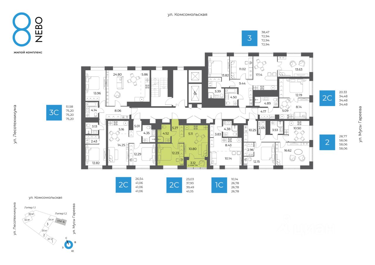 Жилая площадь 23.03 кв. м. от ГК "Первый Трест".
