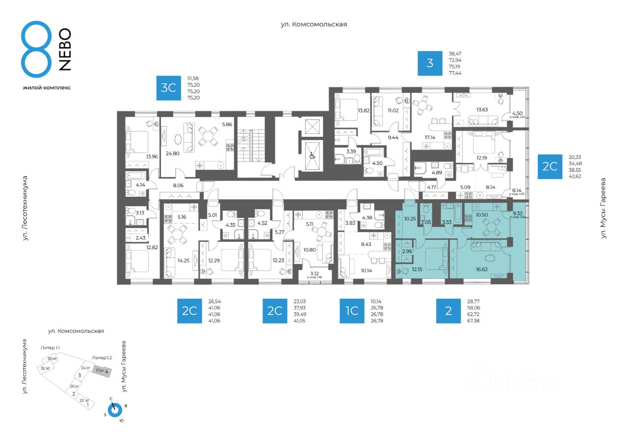 Литер 1.2, Секция 4. 16-й этаж 17- этажного жилого дома