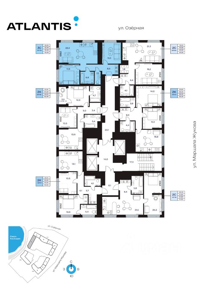 ЖК Атлантис, Секция 1. 14-й этаж 32- этажного жилого дома